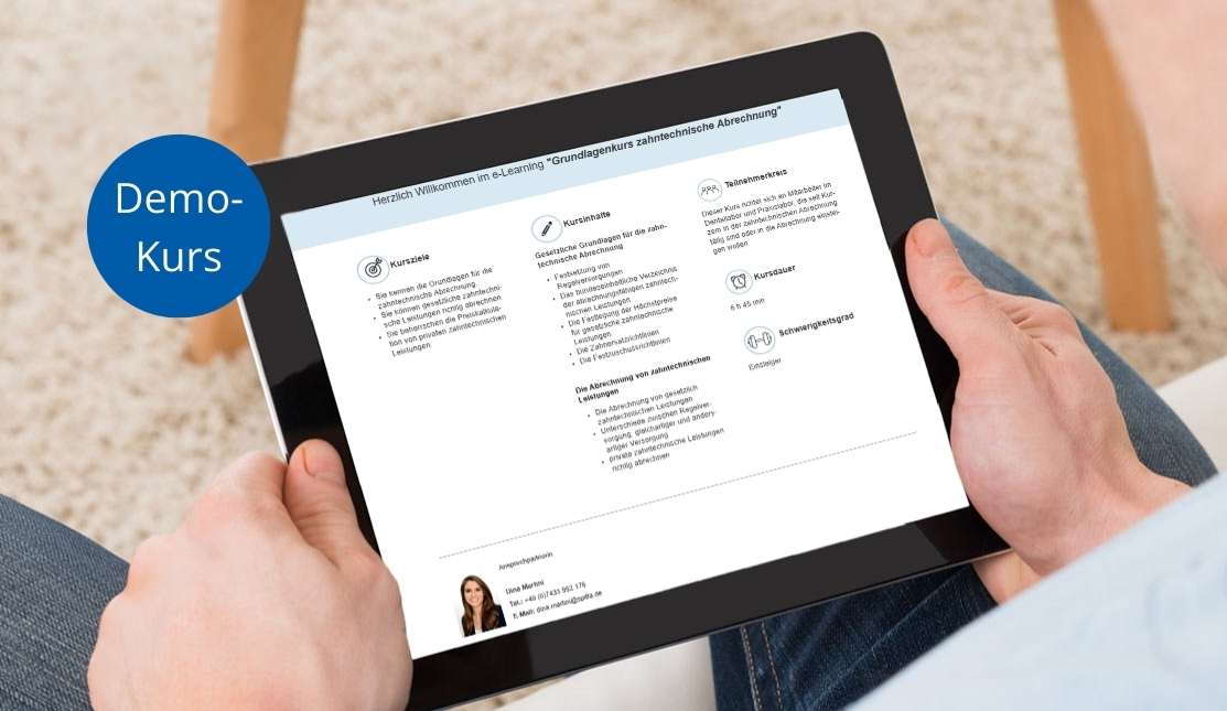 - Sie erhalten einen Einblick in das eLearning Grundlagenkurs zahntechnische Abrechnung.